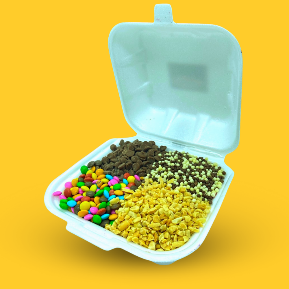 🍧 Escolha a base, frutas, cremes para criar a combinação perfeita! 💜🍓🍌🥥✨